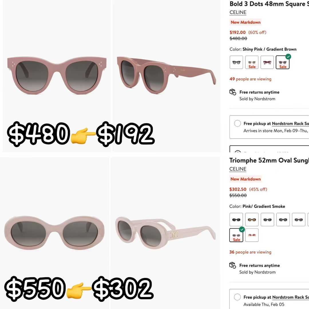 Celine墨镜特惠:两款粉色墨镜超值折扣