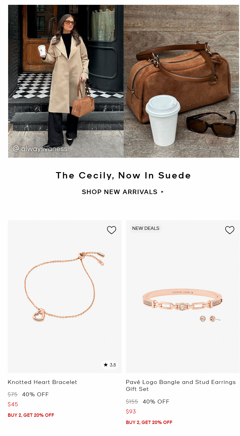 - Michael Kors Outlet 限时2件额外8折 。