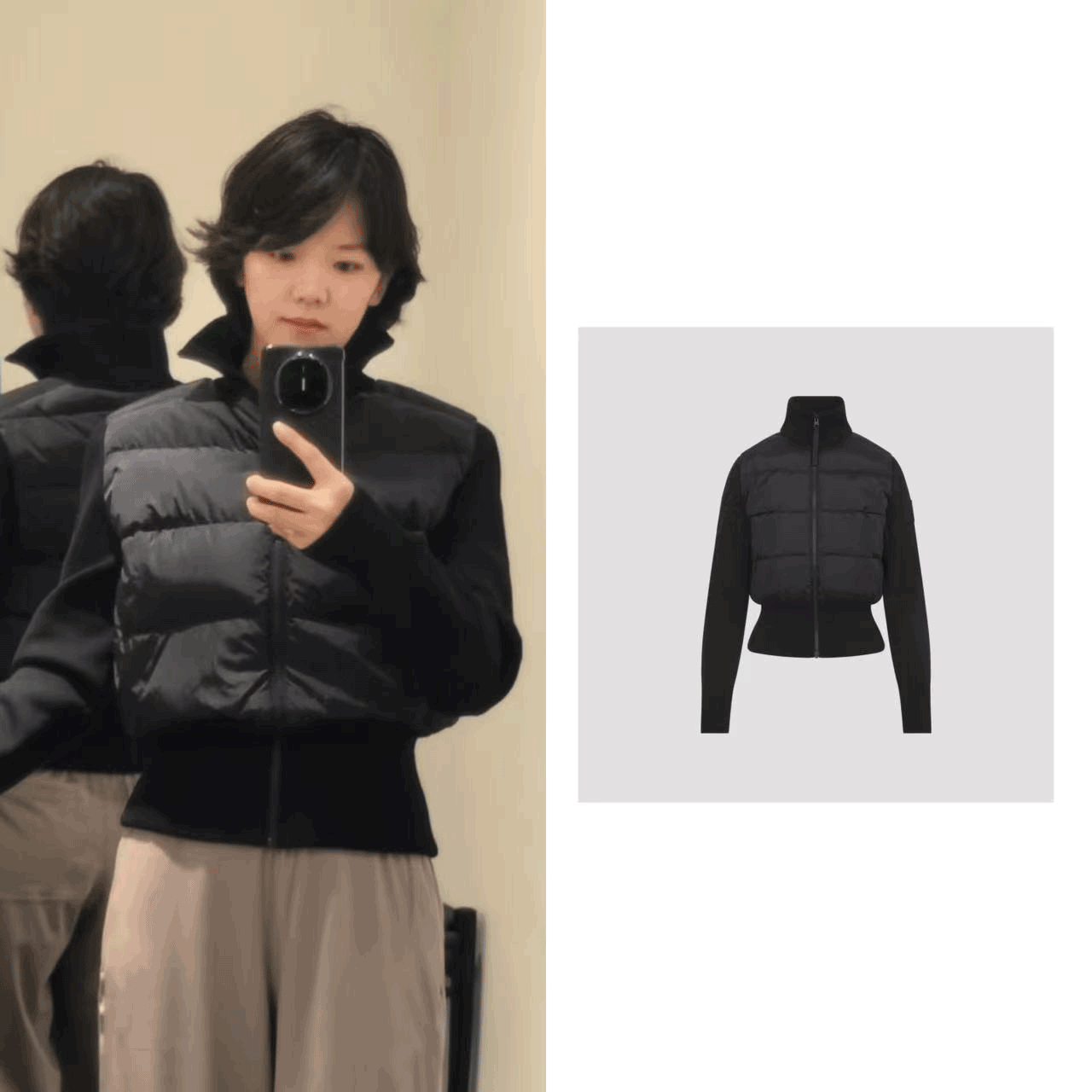 这款夹克专为南方冬季设计,兼具保暖与时尚。衣袖采用厚实针织材质,宽松版型搭配弹力高腰设计,不仅穿着舒适,更能拉长身形比例,展现优雅线条感。