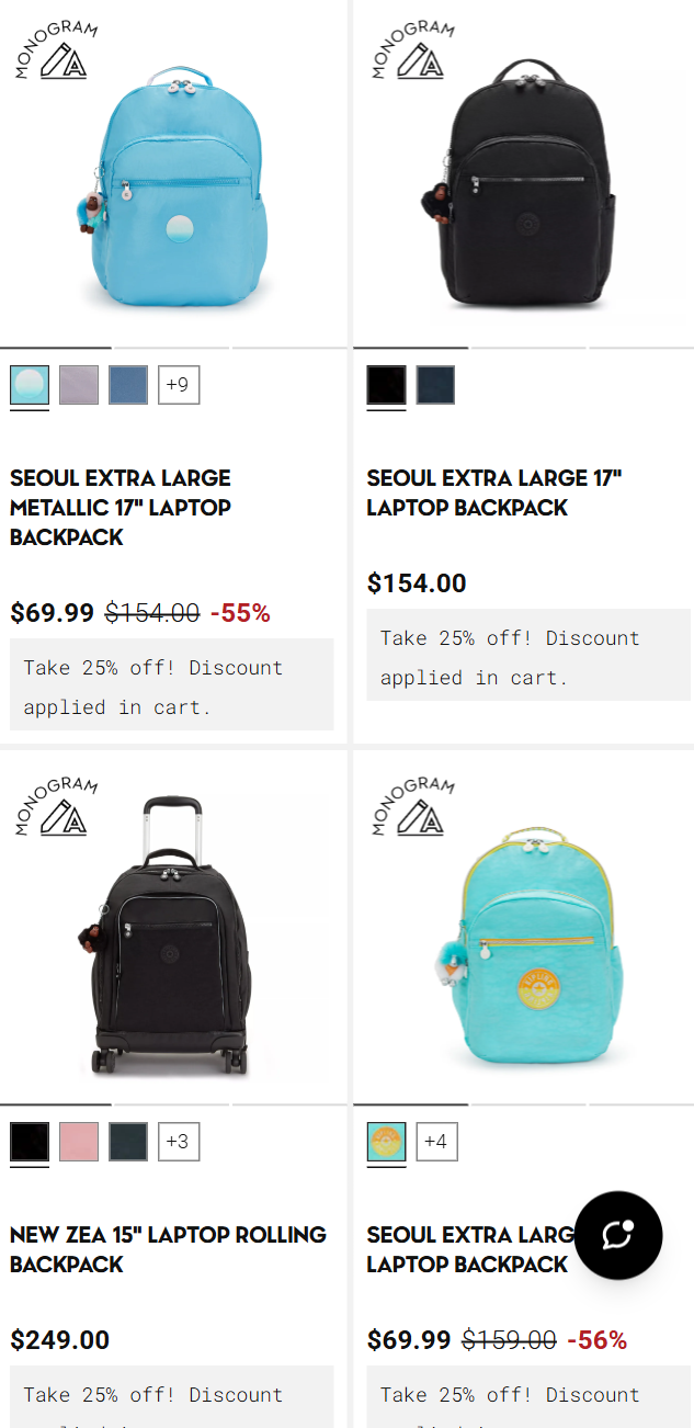 - 折扣区 | 奥莱闪促$19起 | 双肩包7.5折